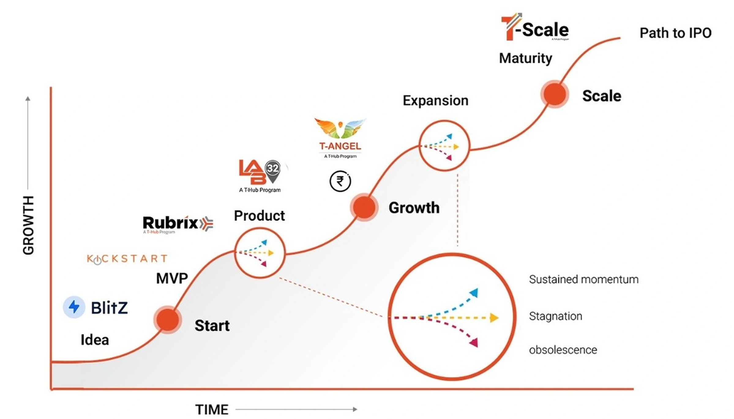 T-Hub’s flagship programs are meticulously crafted to guide startups through distinct phases of their evolutionary journey. Whether you're sculpting the blueprint at the ideation stage, preparing for market entry, seeking investment avenues, or aiming for substantial growth and scaling, T-Hub is committed to empowering and accelerating your dream business.